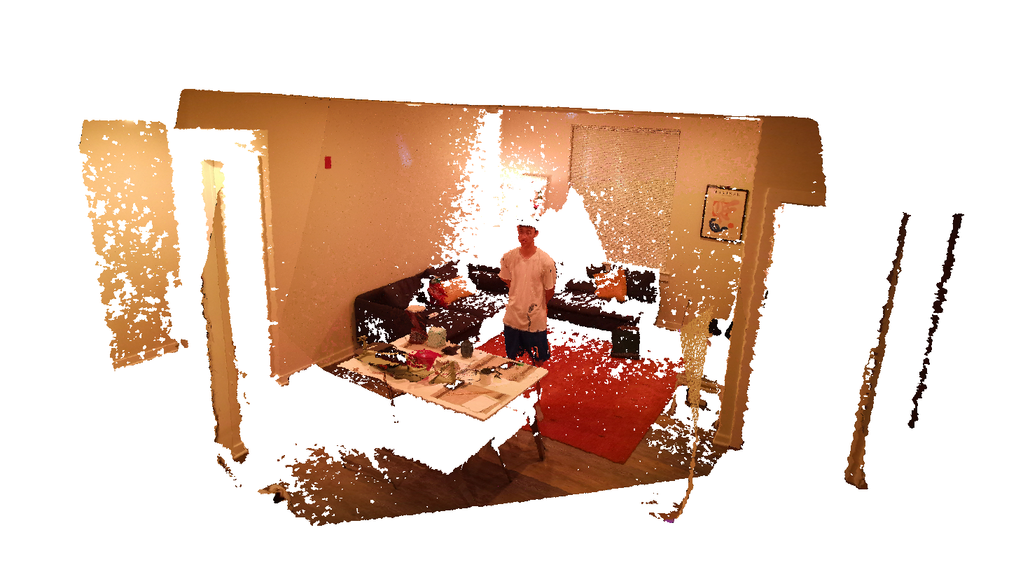 The Azure Kinect has a much more extensive SDK than the GoPro API, in addition to being a more complex sensor device. As a result, synchronizing multiple Azure Kinects was not too difficult, most of the work was reading through a pretty sizable chunk of the SDK documentation to understand the task of synchronization. Honestly, using this camera is pretty fun; the software has great visualization options and all the controls are right there for you to tweak. The one thing that’s pretty annoying is that the file type is .mkv, so you’ll need a special tool to extract the different ‘tracks’ (RGB, Depth, IR, Audio). Because this device captures RGB-D data, it makes a good candidate for 3D reconstruction. The depth and RGB data can be extracted into frames, which can be fused using an algorithm like Kinect Fusion. Shown below is a reconstruction generated by TSDF Fusion, which is another common reconstruction algorithm, and is actually a subprocess of the Kinect Fusion algorithm.